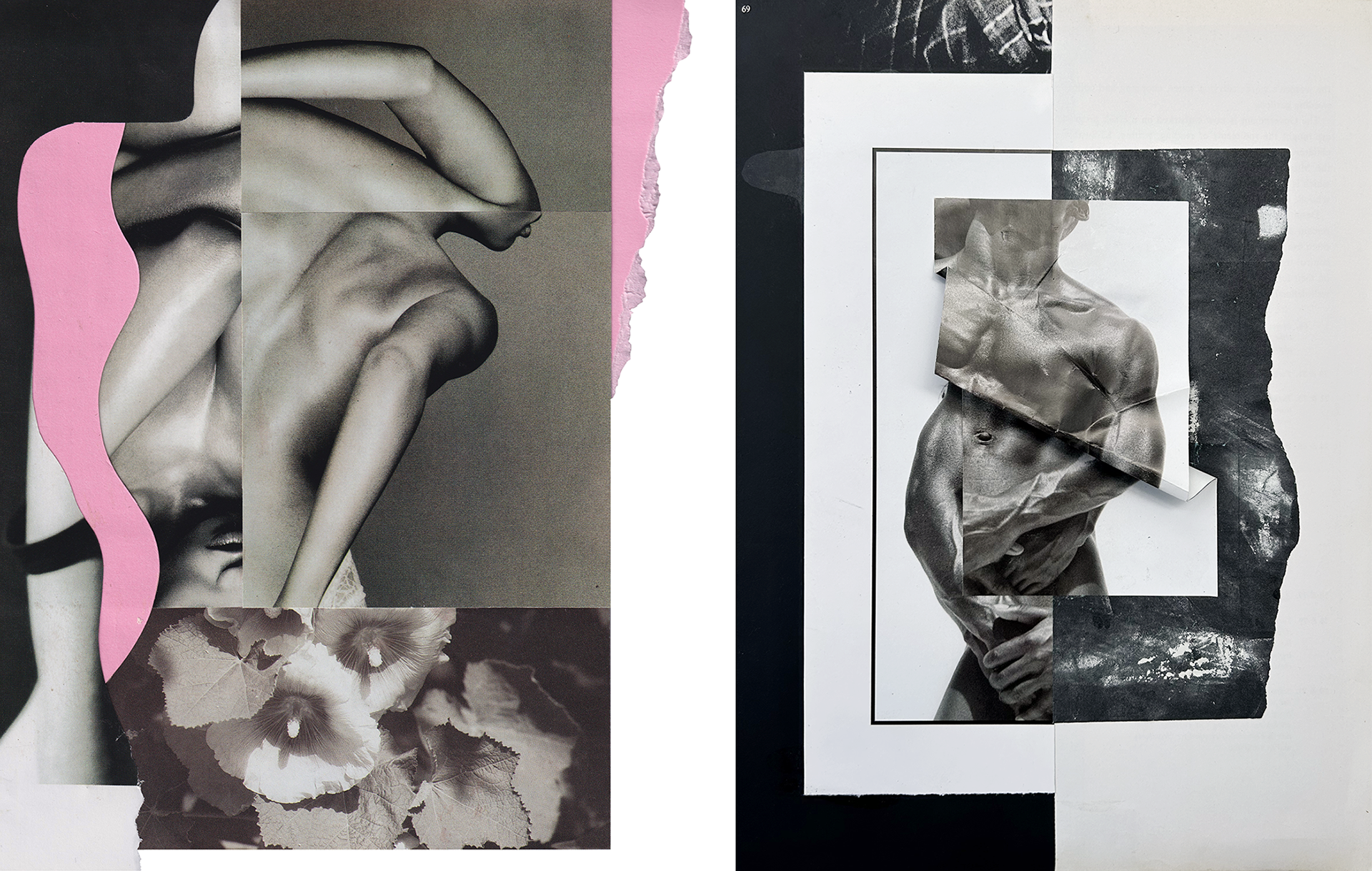 Folded Light presents new artworks by Steve Tierney that explore the human figure through collage. Built from layers of photographic imagery and torn paper, the collaged images transform familiar bodies into abstract compositions. The figures feel both present and unsettled, drawing attention to what is shown, what is hidden, and what feels exposed.